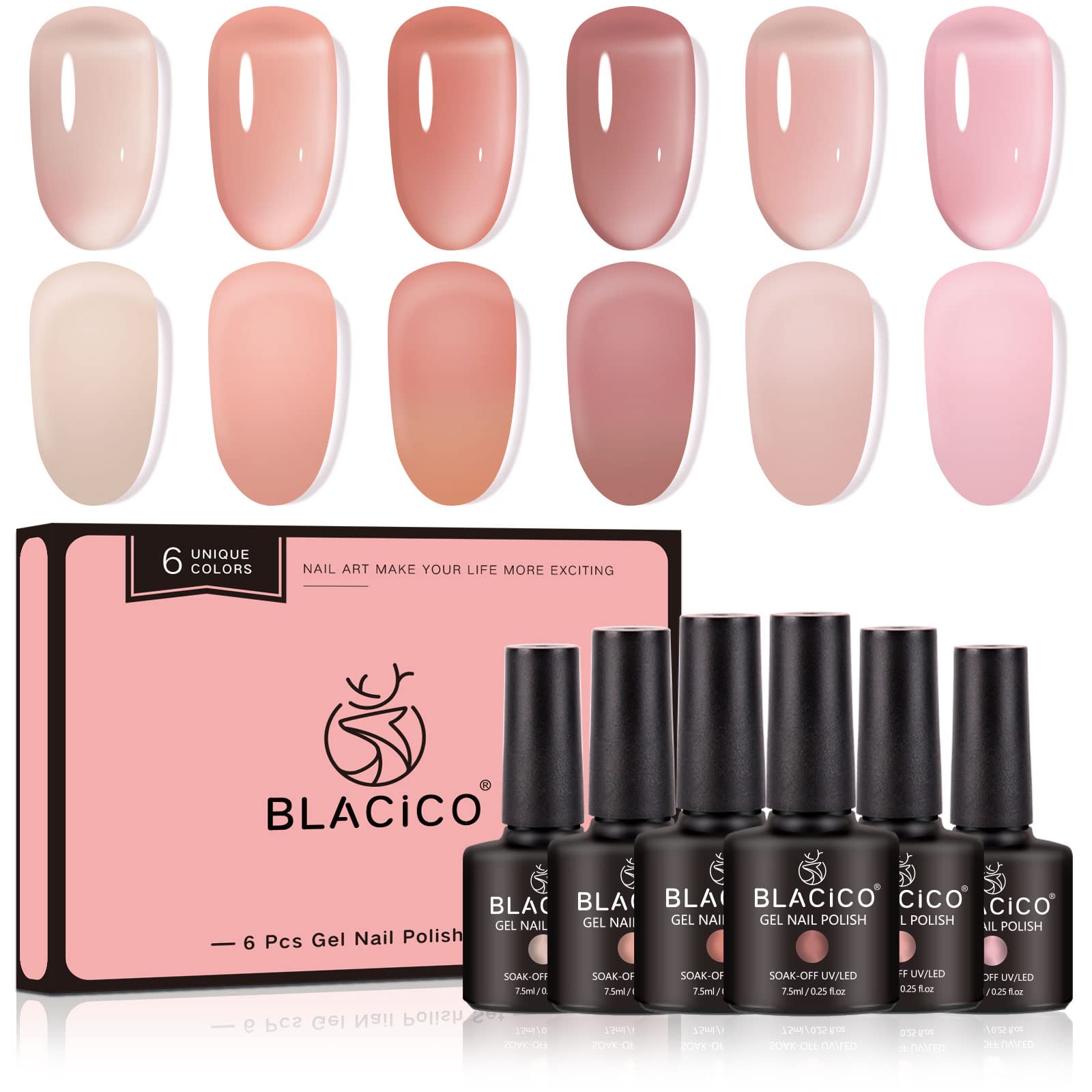 Amazon Com Blacico Jelly Gel Nail Polish Set 6 Colors Transparent Gel Polish Kit Nude Peach Pink Nail Polish Gel Soak Off Led Gel Nail Kit Diy Nail Art Salon Manicure Gifts